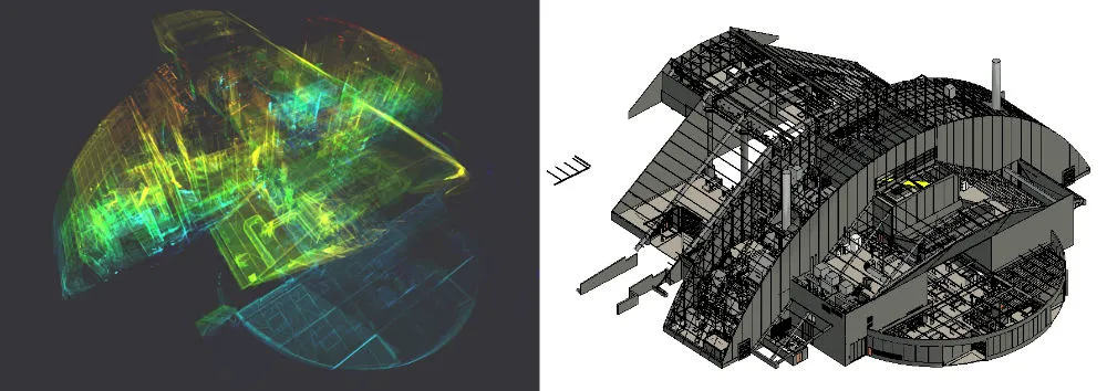 Pour cela, des logiciels tels que Navisworks ou Autodesk permettent d’insérer le nuage de points (faisant office de référentiel spatial à jour du bâtiment) dans la maquette numérique existante.