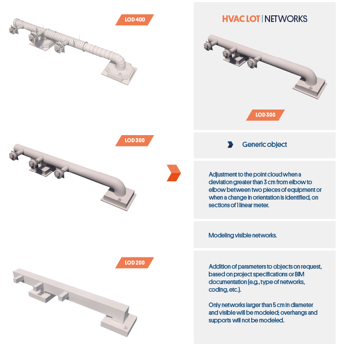 As part of our modeling projects, we use the point cloud as the modeling layer to ensure the production of an accurate 3D model (the Scan-to-BIM process).
