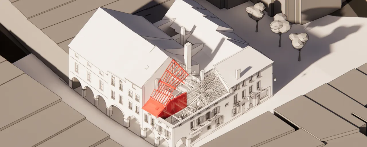 At the same time, photogrammetric rendering was used to inspect the damage caused to the roofs and high points of the building. Accompanied by the raw shots taken by the drone, these two references gave an overview of the Louhans site to all the actors of the project.