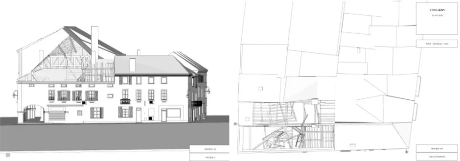The latter are much more tedious and the risk of error they involve is too great for a project of the complexity of Louhans's. On the one hand, the 2D interior and exterior plans will have allowed the design offices to accurately estimate surfaces and to calculate the rows of materials to be removed.