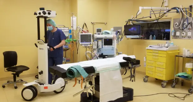 To adapt to the constraints of the hospital environment, we implemented a hybrid approach, combining the precision of a static scanner and the speed of a mobile scanner.