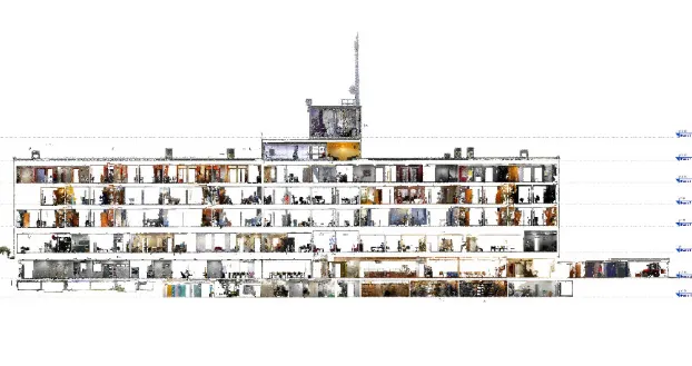 As part of a “Scan to BIM”, the assembled point cloud was delivered to a project management assistance agency (AMO). It will be used as a modeling layer to produce the BIM digital model.
