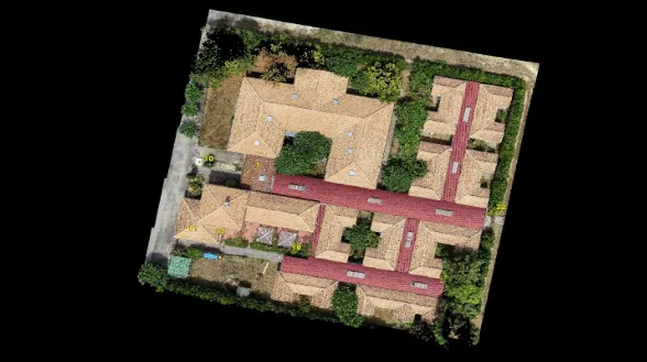 - Fotogrametría con dron : Utilizada para levantar la cubierta, inaccesible para los operadores, asegurando una visión completa del volumen del edificio.