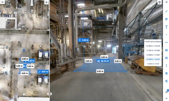 En paralelo, se desplegó una visita virtual del sitio. Basada en imágenes panorámicas y en la nube de puntos 3D captada con el escáner NavVis VLX, ofrece a los usuarios una funcionalidad de toma de medidas directamente en un entorno visual preciso.