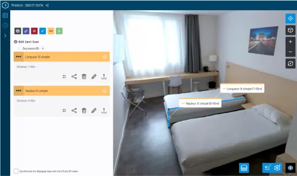- Prendre des mesures d'éléments non représentés sur les plans grâce à une fonctionnalité de prise de côtes intégrée à la visite virtuelle.