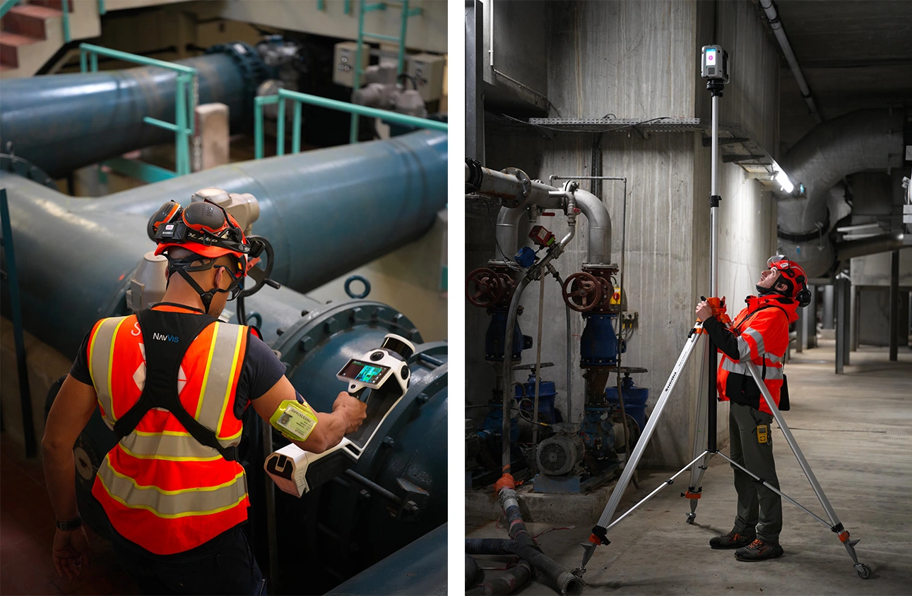 Dans le cadre de son contrat de délégation avec le SEDIF, Franciliane doit cartographier des infrastructures de traitement d'eau couvrant plus d’un millions de mètres carrés. L'environnement est particulièrement complexe et difficile : risques chimiques, bassins, moiteur, toitures géantes, des bâtiments complexes sur plusieurs niveaux et semi niveaux et espaces confinés souterrains (chambres de vannes de 2 m³ à 40m³) nécessitant des protocoles de sécurité CATEC extrêmement lourds.